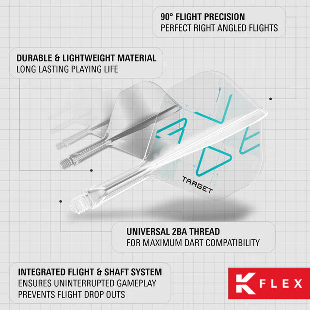 Designed to reduce deflections and maintain tight groupings, K Flex delivers performance you can count on. Featuring a fixed 90-degree flight angle for perfect aerodynamics and a universal 2BA thread, the system delivers stable flight paths and seamless compatibility with all standard 2BA dart barrels.